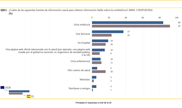 En cambios, europeos y españoles sí que coinciden en que la información más veraz sobre estos medicamentos la ofrece el médico (un 84 por ciento y un 92 por ciento respectivamente), mientras que enfermeros (10 y 11 por ciento), hospitales (19 y 16 por ciento) y centros de salud (6 y 16 por ciento) quedan relegados a puestos muy secundarios en esta función.