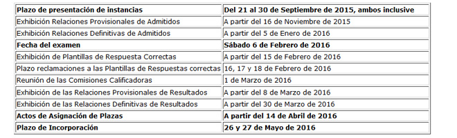El primer día de marzo traerá consigo la reunión de las Comisiones Calificadoras, antesala de la publicación de unos resultados que se harán oficiales a partir del día 30 de dicho mes. No obstante, está previsto que a partir del día 8 se publiquen unos resultados provisionales. El acto de asignación de plazas no se celebrará antes del 14 de abril, mientras que la incorporación de los que las consigan se producirá los días 26 y 27 de mayo.