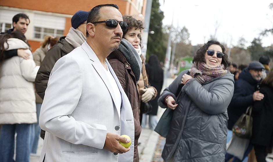 Natalia Gutiérrez y Juan Guillermo Pérez, de Colombia, llegaron de la mano a las inmediaciones de la Facultad de Derecho de la Universidad Complutense de Madrid -una de las sedes del examen-. Los dos son facultativos que