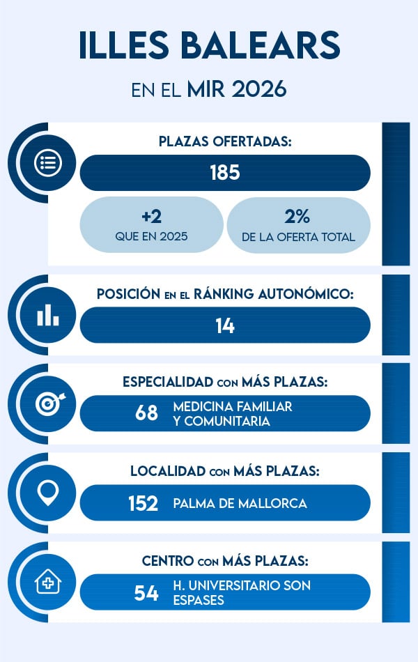 Balearea oferta 185 plazas en la convocatoria MIR de 2026.