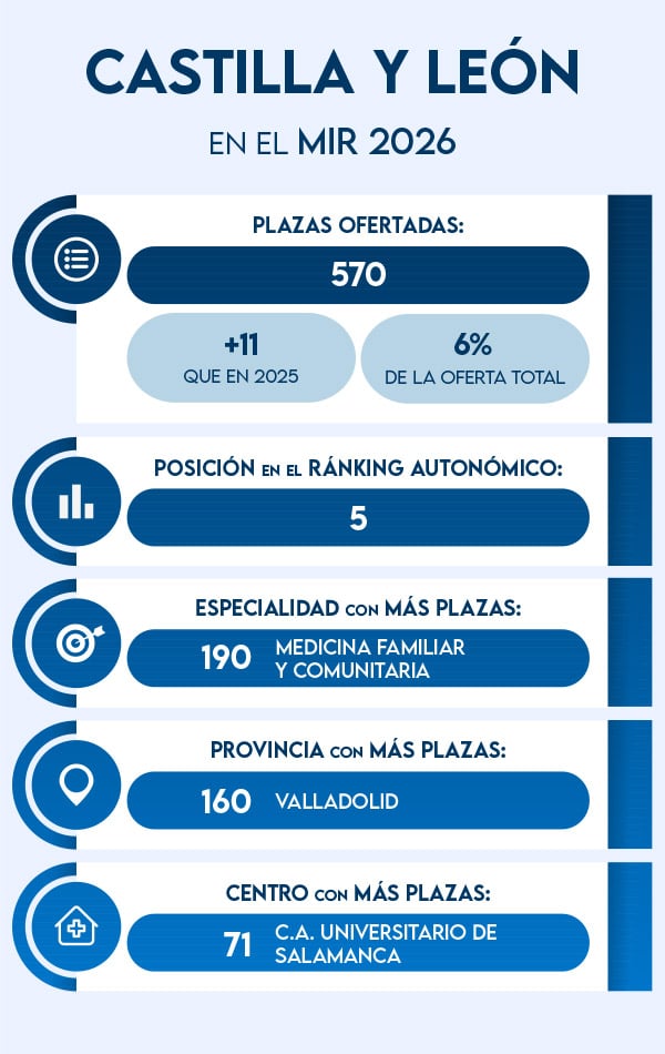 Castilla y León ofrece 570 plazas MIR en la convocatoria de 2026.