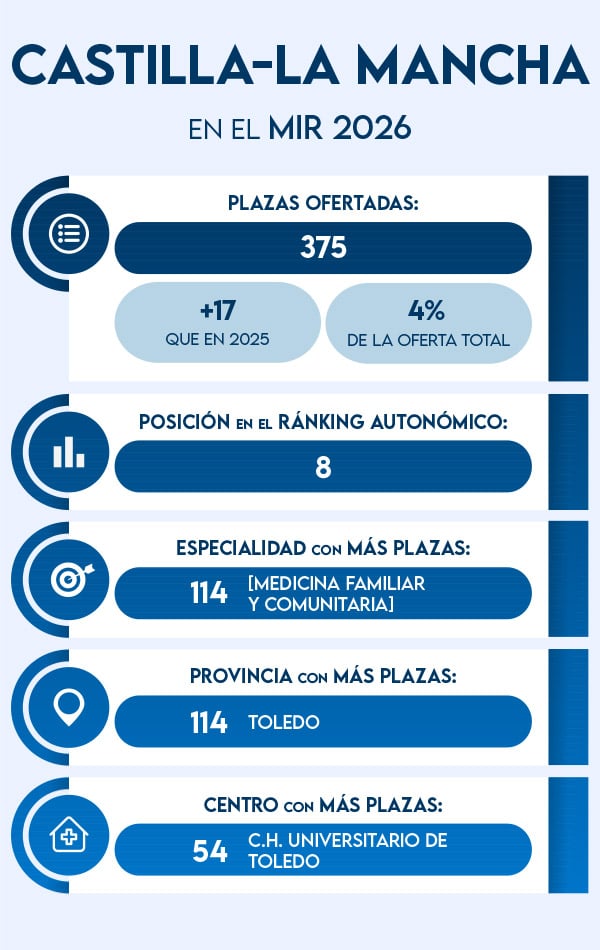Las 375 plazas MIR 2026 de Castilla-La Mancha, que