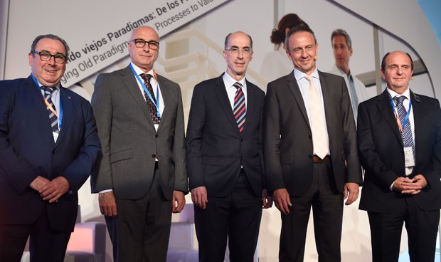 Ramón Ares, presidente del 21CNH, Jesús Sanz, presidente de Ande, Jesús Vázquez Almuiña, consejero de Sanidad de Galicia, Esteban Plata, presidente Abbvv, y Jon Guajardo, de Amphos.