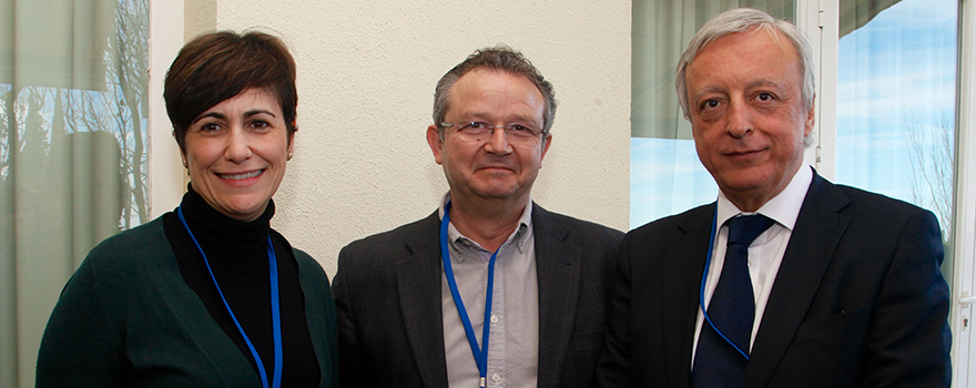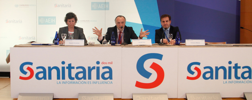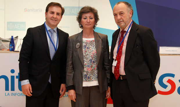 De izq. a dcha.: Begoña Fernández, técnica de la Administración General-Rama Jurídica del Ayuntamiento de Madrid; José María Pino, presidente de Sanitaria 2000, y Francesco Maione, director general de Carburos Metálicos, en la inauguración del IV Encuentro Global de Ingeniería Hospitalaria. |