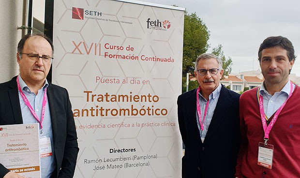 José Mateo, codirector del curso; José Antonio Páramo, presidente de la SETH, y José Ramón Lecumberri, codirector del curso.