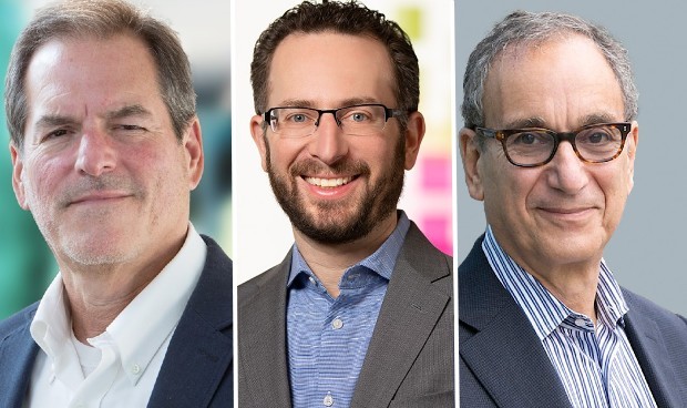 Hal Barron, presidente de investigación y desarrollo de GSK; Daniel Skovronsky, presidente de Lilly Research Laboratories, y George Scangos, director ejecutivo de Vir.