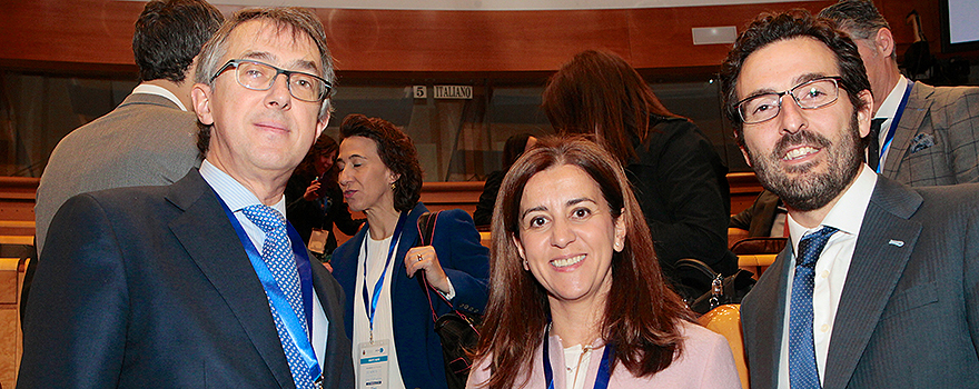 Encarnación Cruz Martos, directora general de Cartera Básica de Servicios del SNS y Farmacia; Pío García Escudero, presidente del Senado, y Raúl Díaz-Varela, presidente de Aeseg. |