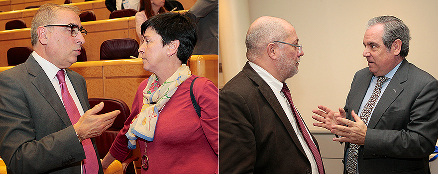 Martínez Olmos charla con el senador popular Aguirre. Ala derecha, Patricia Lacruz junto al subsecretario de Sanidad de la Comunidad Valenciana, Ricardo Campos. |