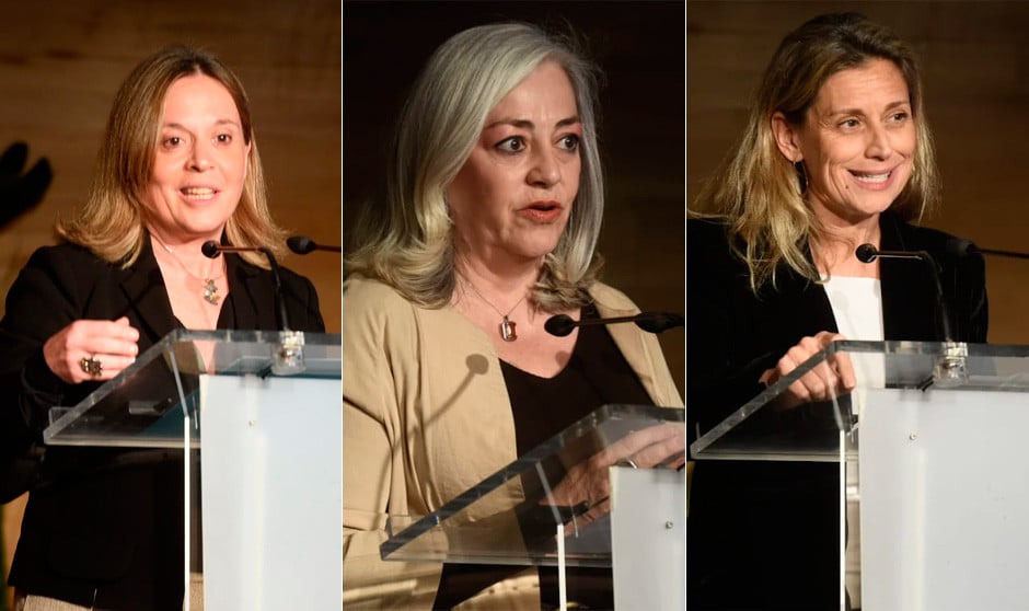 Fina Lladós, presidenta de Farmaindustria; Lourdes López, vicepresidenta de Fenin; y María Carol, directora de Entorno Social y Gobernanza del Hospital Sant Pau.