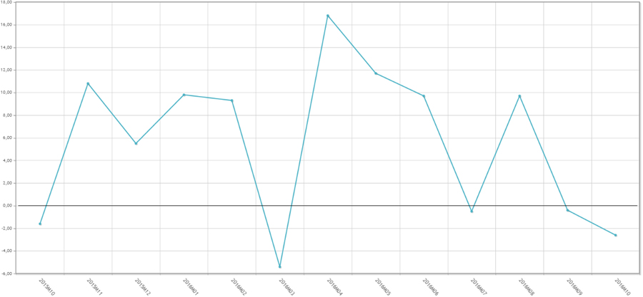 De esta manera, el sector de fabricantes de productos farmacéuticos encadena dos meses consecutivos de caída en los números rojos, después de la que se registró en septiembre. A pesar de todo, el saldo ‘acumulado’ está a favor del crecimiento, con un 5,4 por ciento de aumento en lo que va de año.