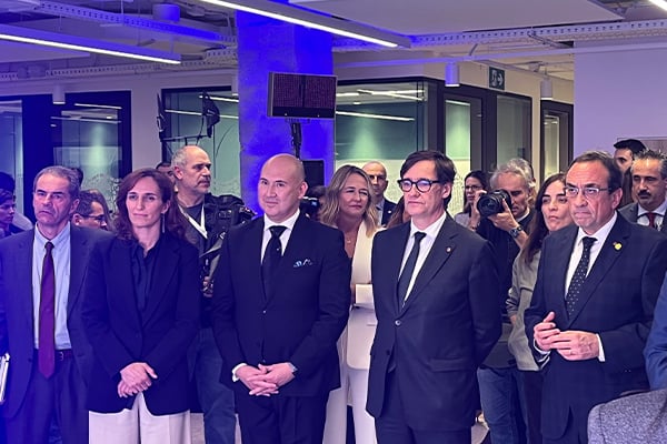 Carlos Prieto, delegado del Gobierno en Cataluña; Olga Pané, consellera de Salut de la Generalitat de Catalunya; Juan Cruz Cigudosa, secretario de Estado de Ciencia, Innovación y Universidades; Sharon Barr; Mónica García, Rick Suárez, Ruud Dobber; y Marta Moreno.