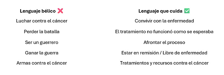 anima a sustituir el lenguaje bélico por expresiones más humanas, respetuosas y acordes con la realidad de las personas con cáncer y su entorno más cercano.