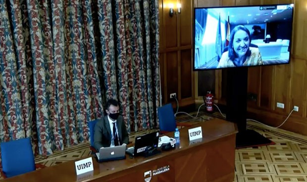 Reyes Maroto, ministra de Industria, durante su intervención en el encuentro.