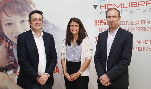 Víctor Jiménez, Beatriz Pérez y Ramiro Núñez durante la presentación de Hemlibra.