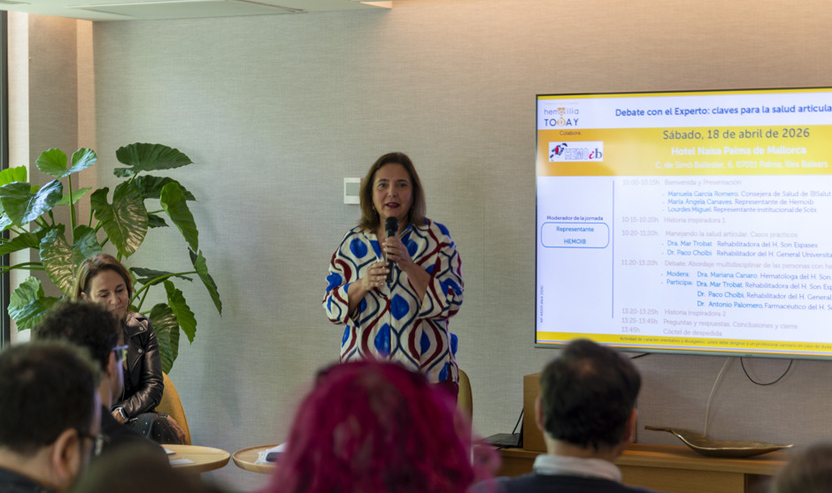 Jornada Debate con el Experto en Hemofilia de Sobi, celebrada en Baleares con Manuela García. | Foto: Sobi.