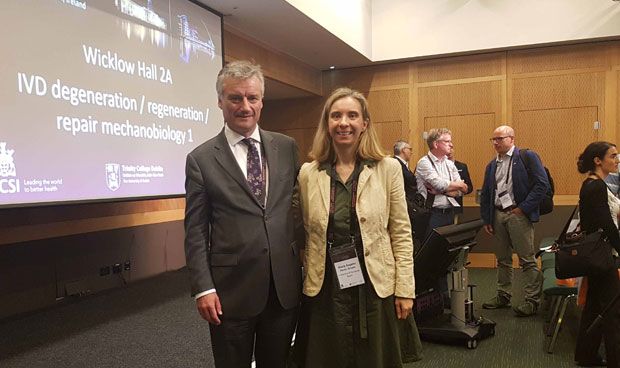Patrick J. Prendergast, rector del Trinity College, junto a María Ángeles Pérez, nueva presidenta de la Sociedad Europea de Biomecánica.