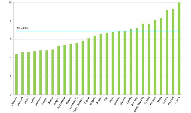 Estas cifras están lejos de Francia, donde uno de cada diez habitantes por encima de los 15 la sufre. Portugal (9,3 por ciento) y Grecia (9,2 por ciento) son los países que le acompañan en el ‘podio’, mientras que Lituania, Dinamarca e Irlanda son los estados que menos incidencia registran, por debajo del 5 por ciento.