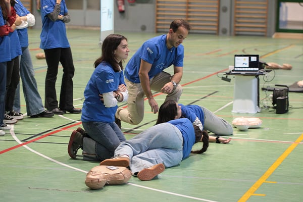 Tras estas palabras de inauguración, cada especialista y MIR se ha encargado de un grupo de no más de 10 alumnos para enseñarles, de una manera más personalizada, el cómo actuar en casos donde un paciente requiera una maniobra cardiorrespiratoria. Así, cada grupo ha rodeado un maniquí -