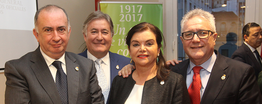 José María Pino, Diego Murillo; Juan Manuel Garrote, secretario general de la OMC y Jesús Aguilar, presidente del Consejo General de Farmacéuticos. |