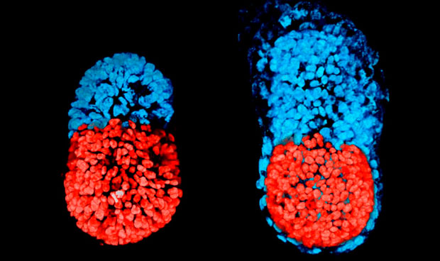 Liderados por Magdalena Zernicka, los científicos colocaron células madre embrionarias y extra-embrionarias (trofoblásticas, que darán lugar a la placenta) en la estructura –los embriones de ratón tienen forma alargada– y comprobaron cómo se empezaban a comunicar entre sí y se organizaban unas respecto a otras.