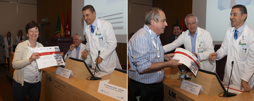 Los premios honoríficos para Juan García Puig y emilio Martín Mola. A la derecha, Mercedes Salaíces, profesora del departamento de Farmacología de la UAM junto a Jesús Frías, jefe del servicio de Farmacología. |