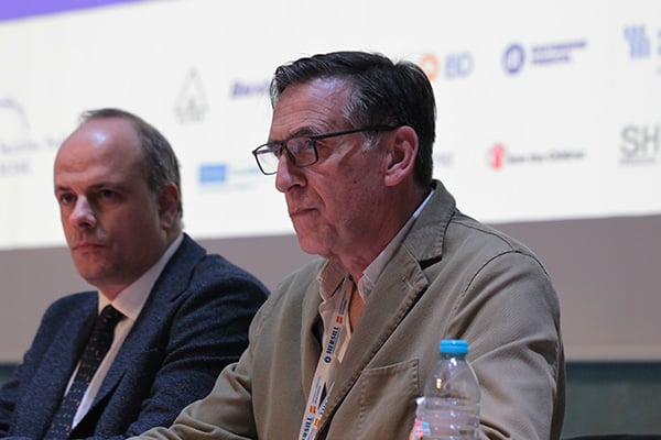 Miguel de Blas, subdirector médico del Área Quirúrgica del Hospital Universitario La Paz y Francisco Reinoso, presidente del Comité Organizador del Congreso y jefe de Servicio de Anestesiología Pediátrica del Hospital Infantil La Paz.