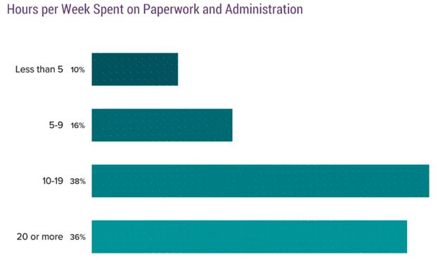 la mayoría de los médicos (53 por ciento) tenían alrededor de 1 a 4 horas de papeleo a la semana y el