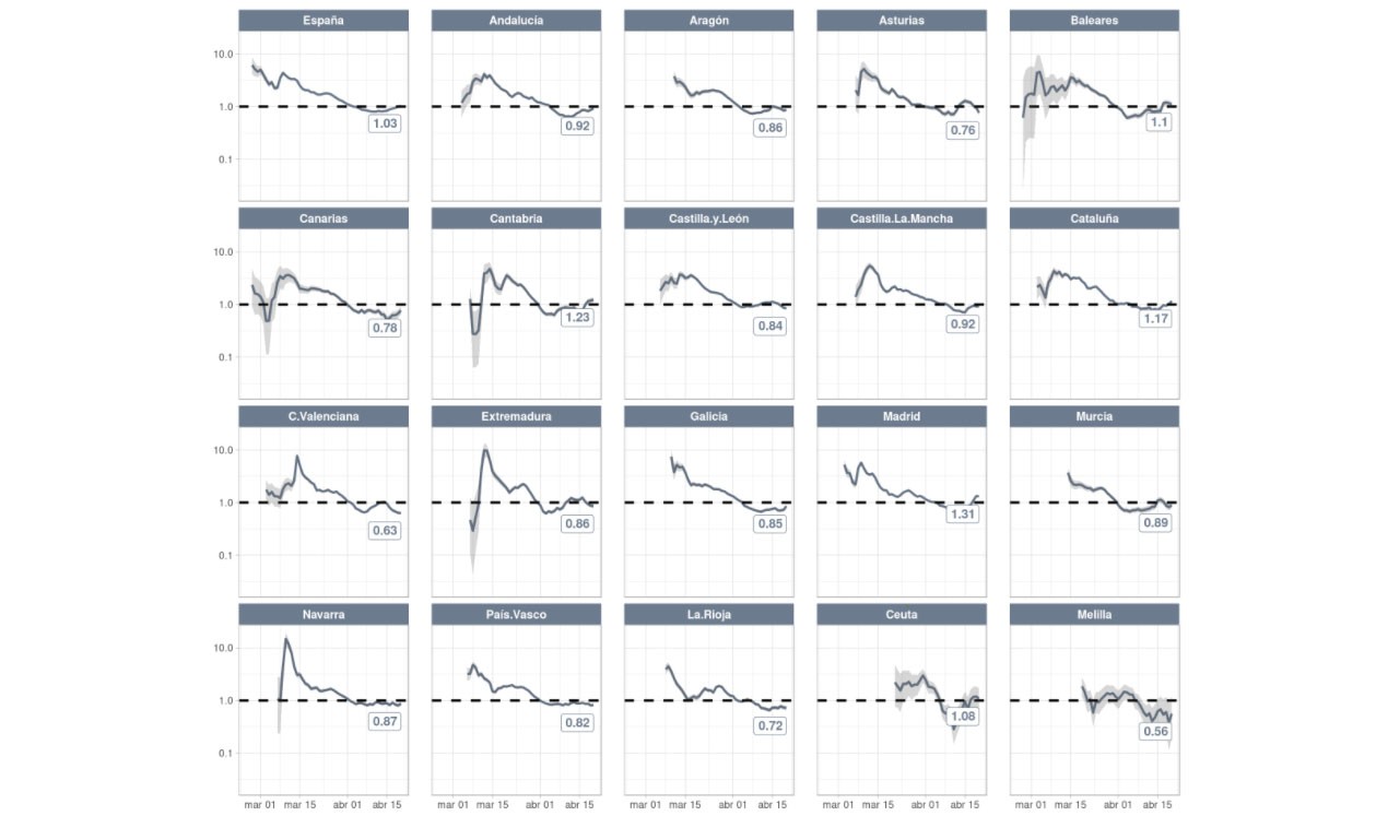 Con ello, en España actualmente hay tres comunidades autónomas con un índice de reproducción superior a uno y por el que se entiende que la epidemia no está disminuyendo a la misma velocidad que en el resto del país.