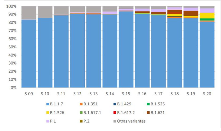 Con la variante Covid-19 india todavía en el punto de mira, las autoridades sanitarias miran con preocupación una nueva cepa procedente de Colombia. Se trata de la B.1.621, reconocida ya como variante de interés (VOI) en el último informe publicado por el MInisterio de Sanidad.