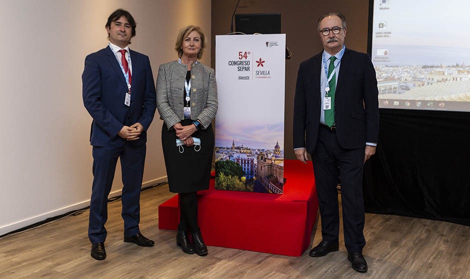 Carlos Jiménez, neumólogo y presidente de SEPAR, junto a Inmaculada Alfageme, presidenta del 54º Congreso Nacional SEPAR Sevilla 2021; y el neumólogo, Felipe Villar Álvarez