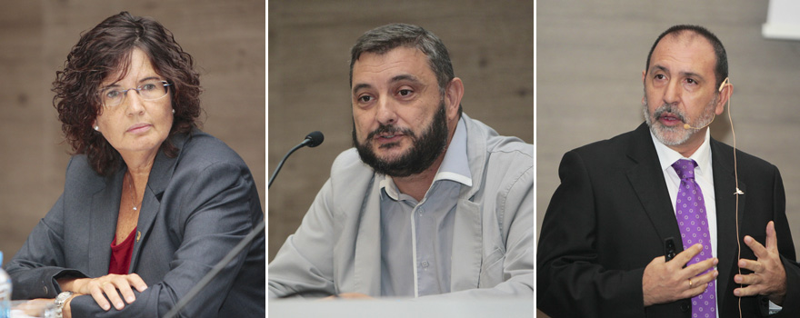 María José Catalán, Manuel Nevado y Vicente Prieto en varios momentos de sus intervenciones