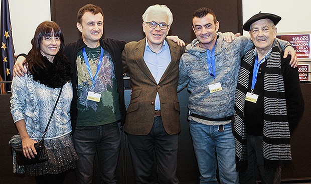 La familia de Maribel Tellaetxe y el portavoz sanitario del PSOE, Jesús María Fernández.