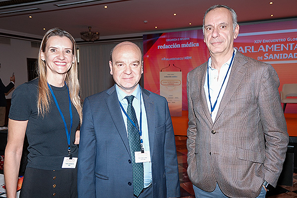 Marina Flordelis; Santiago Morón y Víctor Sánchez, public affairs de Sanofi.