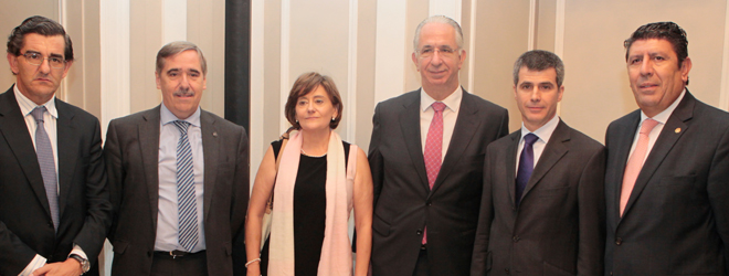 A la izquierda, Luis Olavarría y José Ramón Vicente Rull, gerente del Hospital Mediterráneo. A la derecha, Gonzalo Garate, director de Relaciones Institucionales de General Electric Healthcare España, y Julio de la Rosa, director de Relaciones Institucionales de Gasmedi. |