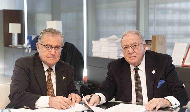 El presidente del Colegio de Médicos de Córdoba, Bernabé Galán, y el presidente de AMA Vida Seguros y Reaseguros, Diego Murillo.