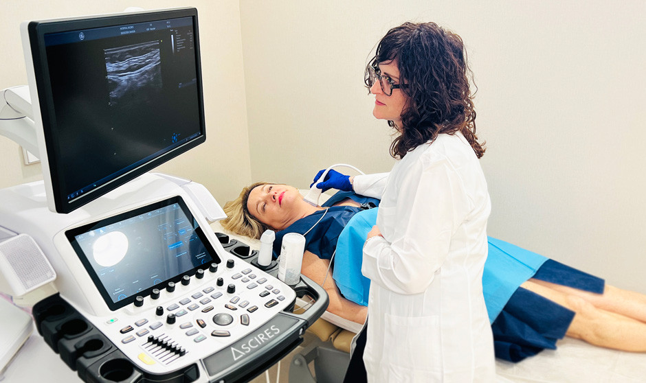 Una paciente se somete a una ecografía de riesgo vascular como parte del chequeo médico personalizado en el Hospital Ascires.