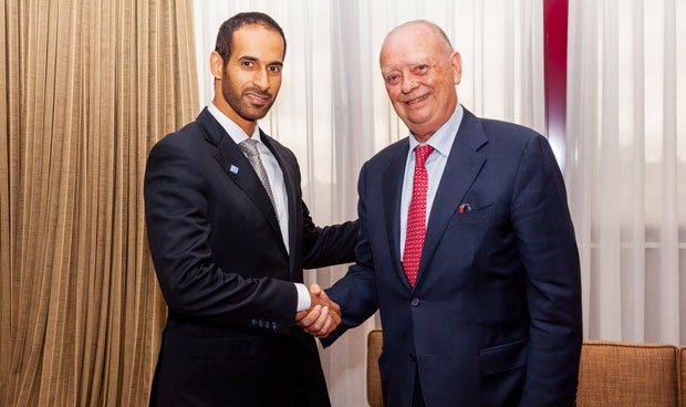 Sheikh Khalid Bin Faisal Bin Sultan Al Qassim, vicepresidente de Faisal Holding, junto a Francisco Ivorra, presidente del Grupo Asisa.