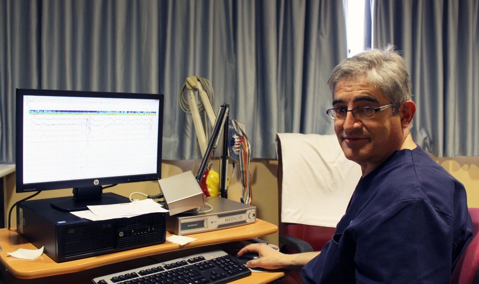La polisomnografía estudia las diferentes variables del sueño en función del tipo de paciente: el registro de la actividad cerebral, de la respiración, del ritmo cardiaco, de la actividad muscular y de los niveles de oxígeno en la sangre mientras se duerme. “Los cambios que produce el sueño en la actividad cerebral son mayores que los que producen muchas patologías y se registra mediante el encefalograma. A través de esta técnica se puede comprobar si el paciente duerme y el nivel de profundidad del sueño, junto con otras variables como el movimiento de los ojos y el tono muscular”, indica el doctor.