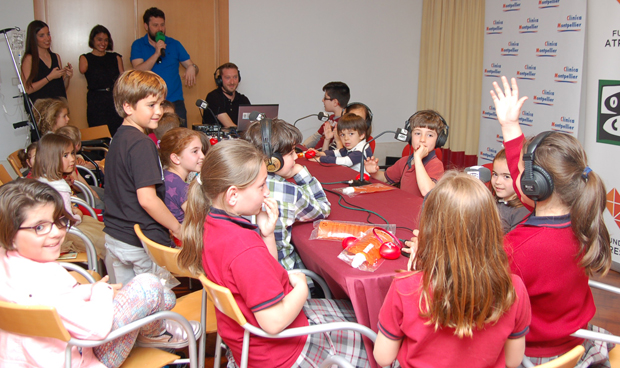Un grupo de niños de los que han permanecido hospitalizados recientemente el la Clínica Montpellier han conocido de cerca el trabajo que se realiza en una emisora de radio gracias a un taller organizado por la Fundación Atresmedia y Onda Cero.