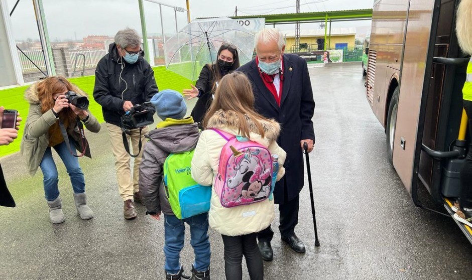 Un momento del autobús fletado por Mensajeros de la Paz tras la donación de la Fundación AMA.