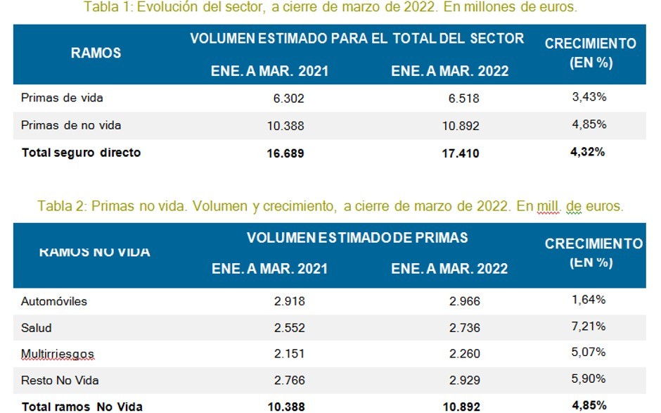 La facturación del ramo de no vida se sitúa claramente en positivo. Anota un repunte interanual del 4,85 por ciento si se compara con marzo de 2021, y del 9,21 por ciento frente a ese mismo mes de 2019. Los seguros de salud crecen de un año para otro un 7,21 por ciento y aportan 2.736 millones. La categoría de “resto no vida” suma 2.929 millones de euros y repunta otro 5,90 por ciento en los últimos 12 meses. Este epígrafe engloba, principalmente, seguros de carácter empresarial. Entre tanto, las coberturas de multirriesgos crecen un 5,07 por ciento en términos interanuales, hasta los 2.260 millones.