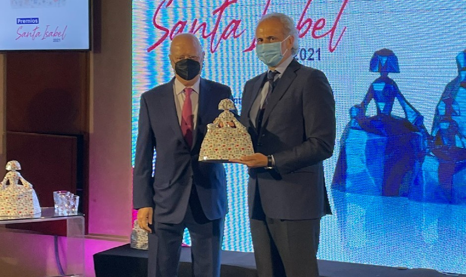 Enrique Ruiz Escudero recibe el Premio Especial Santa Isabel HLA 2021 a la Consejería de Sanidad de la Comunidad de Madrid.