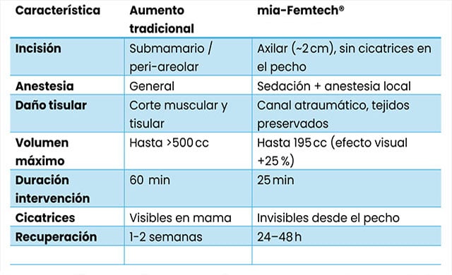 ¿Cuál es la diferencia fundamental con respecto al aumento de pecho tradicional?