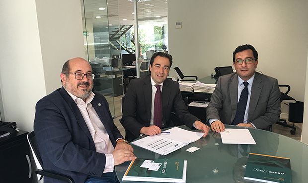 El Decano del Colegio de Químicos de Galicia, Manuel Rodríguez, el gerente especialista de AMIC Seguros Generales en Galicia, Carlos González Vallina, y el director territorial de PSN.