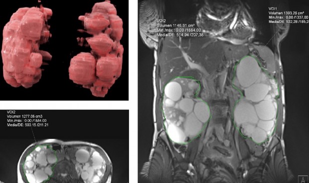 Igualmente, se ha determinado mediante ensayos clínicos que el uso de determinados fármacos (tolvaptan) ayuda a reducir la velocidad de la progresión de la enfermedad, evitando el aumento del tamaño renal y retrasando el deterioro de la función renal. Por ello, la capacidad de contar con una herramienta de medición exacta del VRT es de gran importancia para la óptima selección de los pacientes candidatos al tratamiento y para controlar su respuesta al mismo.