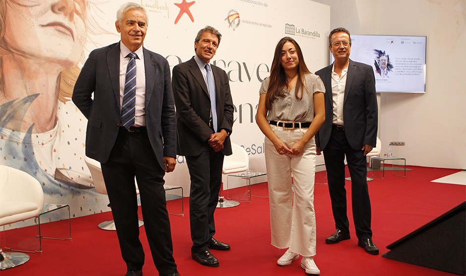 Celso Arango, presidente de la Sociedad Española de Psiquiatría, Vicente Gasull, coordinador de Salud Mental de Semergen, José Manuel, director de La Barandilla y Ana Santos, ilustradora.