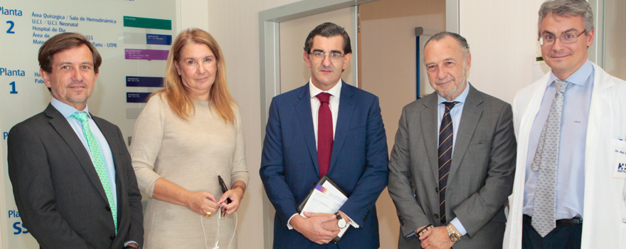 De izq. a dcha.: del Grupo HM Hospitales, Jesús Peláez (director de Docencia), Marisa Calderón (directora de Relaciones Institucionales y Protocolo) y Juan Abarca Cidón (presidente). Les siguen José María Pino, presidente de Sanitaria 2000, y Santiago Ruiz Aguiar, director médico del grupo hospìtalario.
