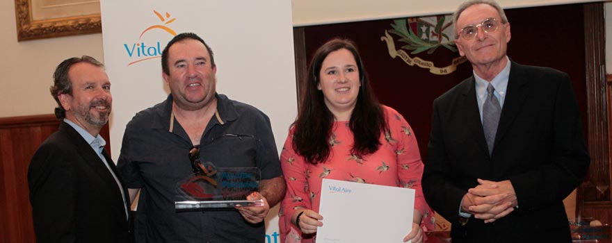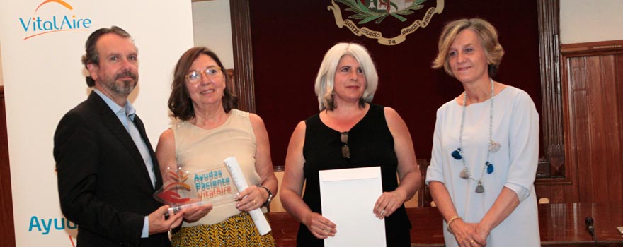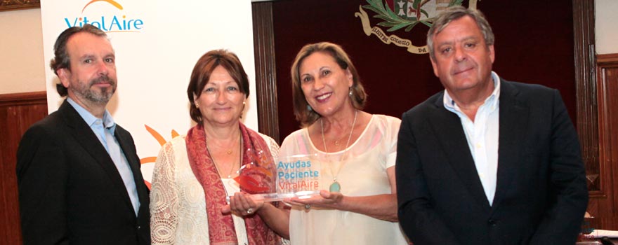 Piedad Navarro y Ángel Bajils entregan el premio a la Asociación de Enfermos con ventilación mecánica de Andalucía (Asevema) |
