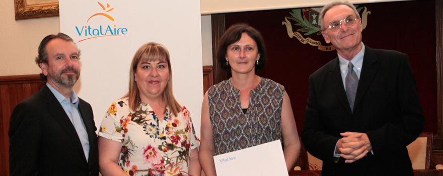 Virginia Moros, responsable de Atención al Paciente Vitalaire; Eusebi Chiner, Jefe de Servicio del Hospital San Juan de Alicante y coordinador de Separ Pacientes; Dolores paredes, directora Comercial y de Marketing de Air Liquide Healthcare y David Rudilla, responsable del Área de Pacientes de Vitalaire. |
