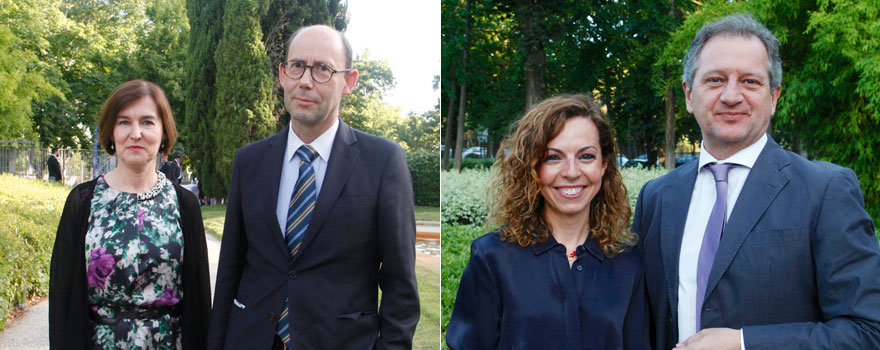 A la izquierda, Jesús Sánchez Martos conversa con Francesco Maione, director general de Carburos Metálicos en España. A la derecha, Manuel Molina, viceconsejero de Asistencia Sanitaria de la Comunidad de Madrid, con Virginia Donado-Mazarrón.